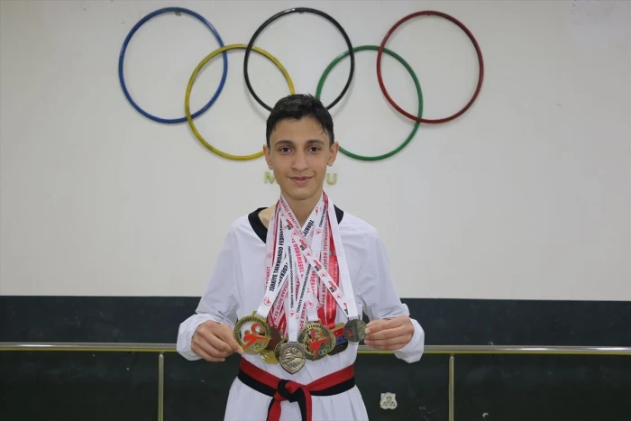 GAZİANTEP (AA) - BEYZA KAYNARPUNAR - Gaziantep'te yaşayan 13 yaşındaki milli tekvandocu Adil Haktan Ayrıç, bu yıl katılacağı Başkanlık Kupası ve Avrupa Şampiyonası'nda altın madalya hedefliyor.