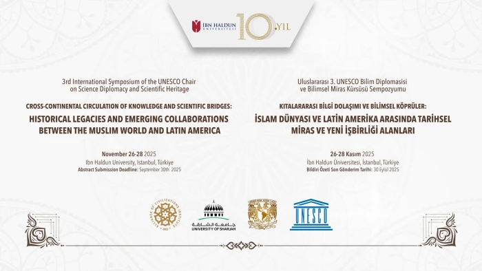 Türkiye Gençlik ve Eğitime Hizmet Vakfı (TÜRGEV), İbn Haldun Üniversitesi, Medeniyetler İttifakı Enstitüsü, Meksika Ulusal Özerk Üniversitesi, UNESCO Bilim Diplomasisi ve Bilimsel Miras Kürsüsü, Sharjah Üniversitesi ve Sharjah Uluslararası Arap ve İslam Bilim Tarihi Vakfı (SIFHAMS) işbirliğiyle düzenlenen sempozyum İbn Haldun Üniversitesi'nin Başakşehir yerleşkesinde "Kıtalararası Bilgi Dolaşımı ve Bilimsel Köprüler: İslam Dünyası ve Latin Amerika Arasında Tarihsel Miras ve Yeni İş Birliği Alanları" temasıyla gerçekleştiriliyor.