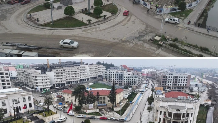 HATAY (AA) - LALE KÖKLÜ/KORAY KILIÇ - Hatay'da 6 Şubat 2023'te meydana gelen depremlerdeki yıkımın fotoğraf ve videoları ile afetin üçüncü yılında aynı açıyla havadan kayda alınan görsellerin birleşimi, şehirde inşa çalışmalarında gelinen noktayı ortaya koydu.