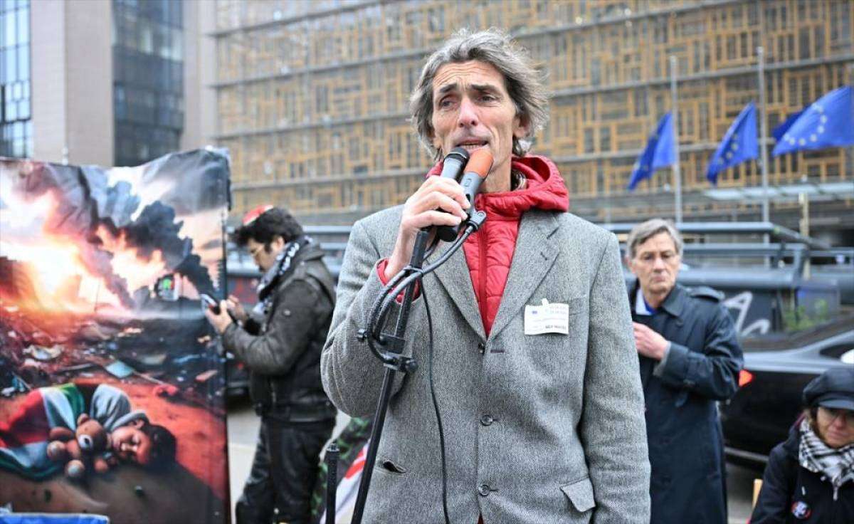Gazze'de gönüllü doktorluk yapan ve 25 gündür yaptığı açlık grevinde 14 kilo veren Fransız doktor Pascal Andre de kalabalığa seslenerek, soykırım karşısında sessiz kalan yetkilileri ve basını eleştirdi.