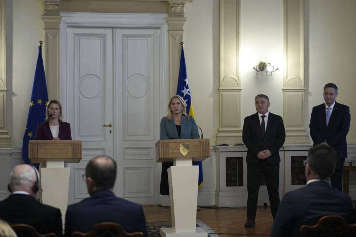 Kallas, Bosna Hersek'in başkenti Saraybosna'daki temasları kapsamında Bosna Hersek Devlet Başkanlığı Konseyi Başkanı ve Sırp üyesi Zeljka Cvijanovic, Hırvat üye Zeljko Komsic ve Boşnak üye Denis Becirovic ile ortak basın toplantısı düzenledi.