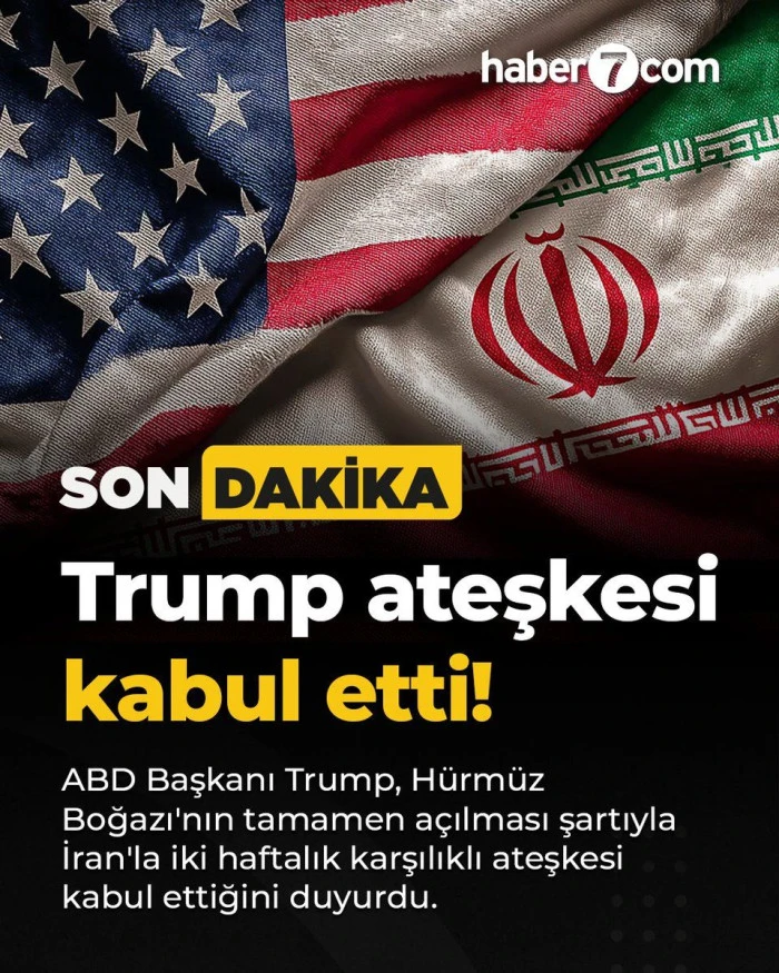 ABD Başkanı Trump, Hürmüz Boğazı'nın tamamen açılması şartıyla İran'la iki haftalık karşılıklı ateşkesi kabul ettiğini duyurdu