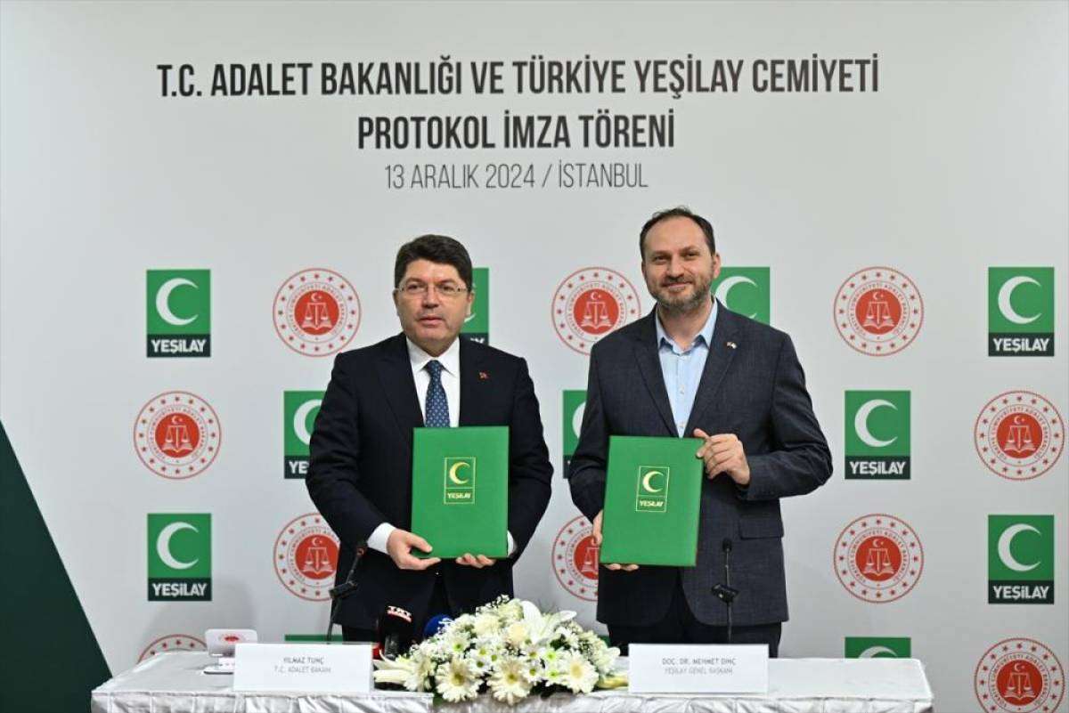 Adalet Bakanlığı ile Yeşilay arasında bağımlılıklarla mücadele konusunda iki kurum arasında gerçekleşecek işbirlikleri ve ortak uygulamalara ilişkin protokol imzalandı. Yeşilayın Sepetçiler Kasrı'ndaki genel merkezinde düzenlenen imza törenine, Adalet Bakanı Yılmaz Tunç ile Yeşilay Genel Başkanı Doç. Dr. Mehmet Dinç katıldı.