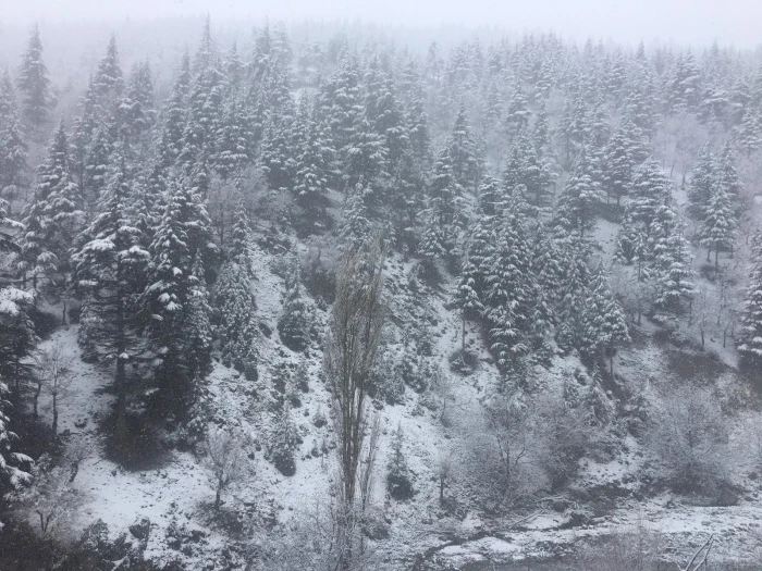 Akkaya Mahallesi ve Feke Barajı çevresindeki sis yoğunluğu dronla görüntülendi.