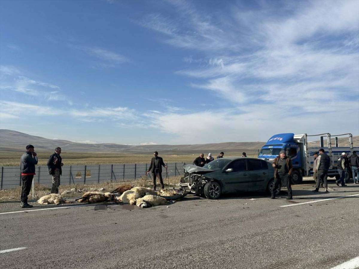 Kazada, 20 küçükbaş hayvan telef oldu, otomobilde hasar oluştu.
