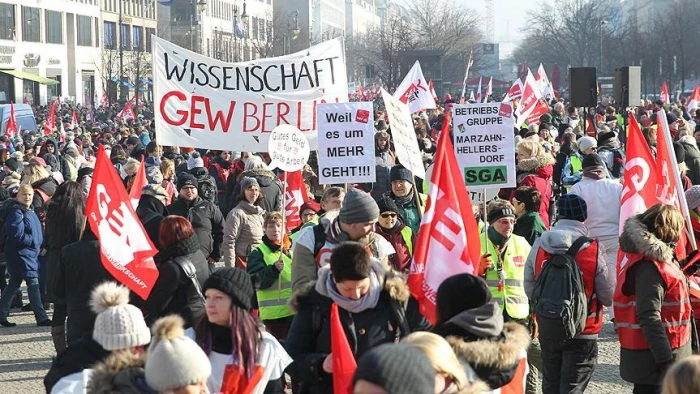 Başkent Berlin’de farklı sendikalara bağlı kamu çalışanları, uyarı grevine giderek iş bırakma eyleminde bulundu.