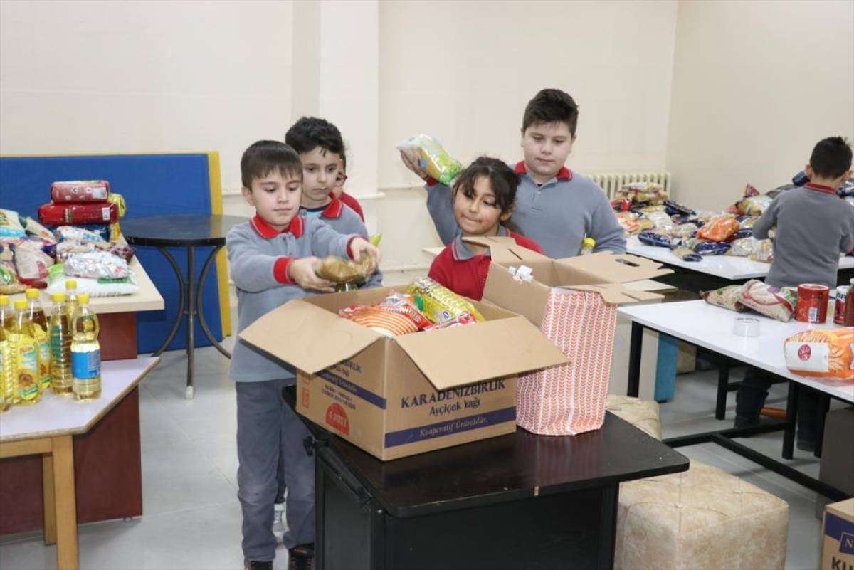 Öğrencilerin kolilediği gıda malzemeleri, okul yönetimi tarafından belirlenen ihtiyaç sahiplerine verilecek.
