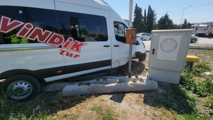 Alınan bilgiye göre, S.V. yönetimindeki 05 AEY 955 plakalı minibüs, ilçe merkezinde bir büfenin yanında bulunan otobüs durağını teğet geçerek yan taraftaki kameriyeye çarptı.