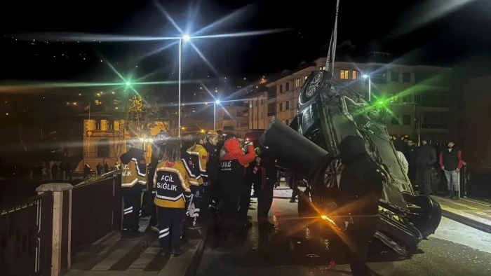Alınan bilgiye göre, sürücüsü henüz öğrenilmeyen 26 ER 251 plakalı otomobil, İstasyon Köprüsü korkuluklarına çarparak Yeşilırmak Nehri'ne düştü.