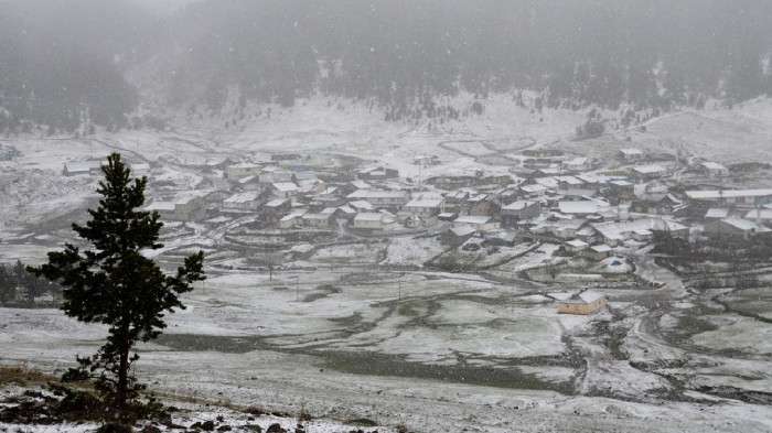 Taşova ilçesi Dereli, Belevi ve Tekke yaylalarında öğle saatlerinde başlayan kar, kısa sürede bölgeyi beyaza bürüdü.