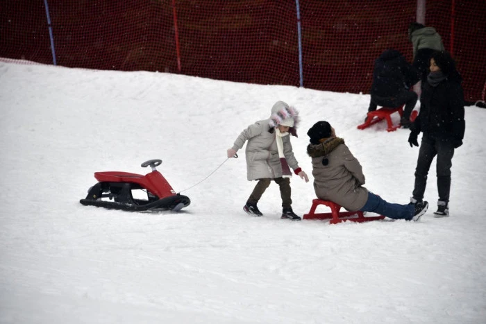 Doğal güzellikler arasında teleferikle dolaşıp, yürüyüş imkanı bulan konuklar, kayak ve snowboard yapıp kızakla kayarak keyifli vakit geçiriyor.