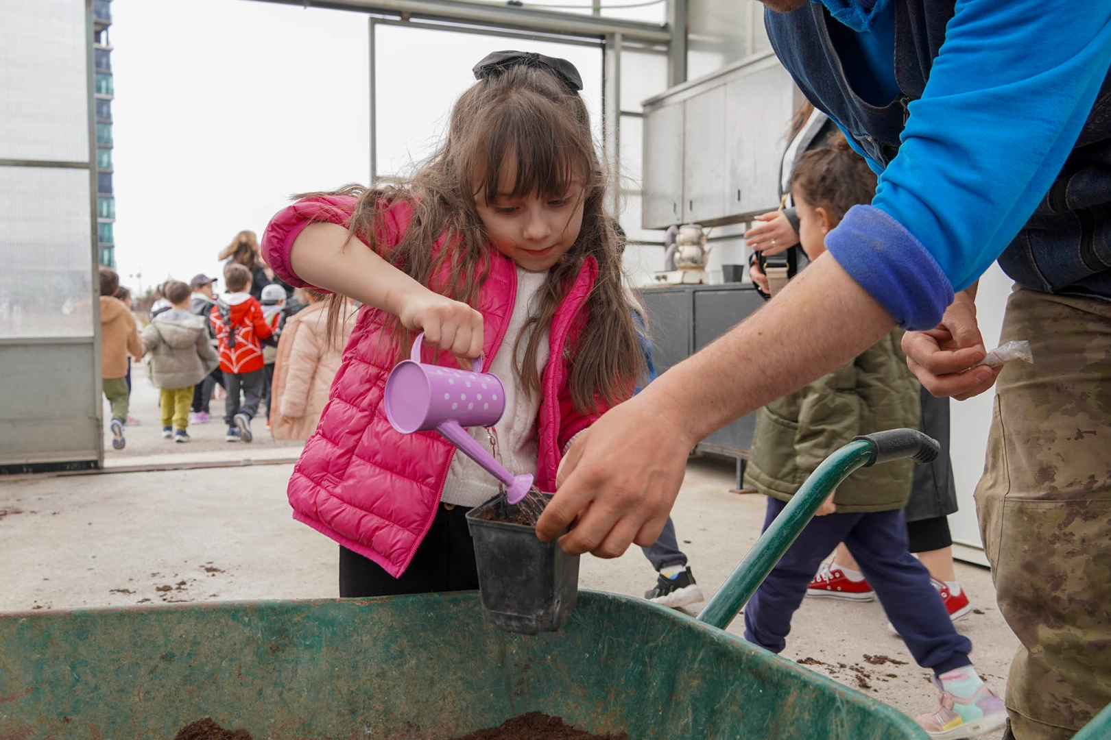 Ziraat Mühendisleri tarafından bitki yetiştiriciliği ve toprağın önemini de dinleyen küçükler daha sonra bitki ekimi için kolları sıvadı. Tohumların toprakla nasıl buluştuğunu uygulamalı olarak öğrenen öğrenciler elleriyle dikim yaptı. Sera gezisinin sonunda öğrenciler hem eğlendiği, hem öğrendiği dolu dolu bir geziyi tamamlayarak hatıra fotoğrafı çektirdi.
