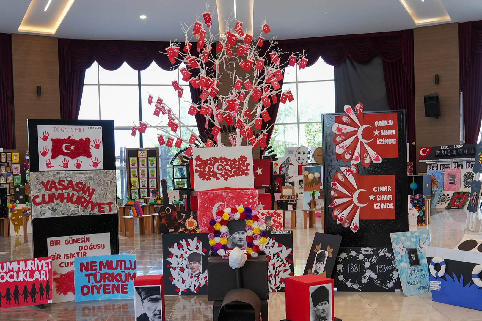 Püskürtme, gölgelendirme, quilling, filografi gibi birçok teknik kullanılarak yapılan çalışmalar büyük beğeni topladı. Atık malzemelerden oluşturulan oyuncaklar ve müzik aletleri ise serginin en dikkat çeken çalışmalarından oldu. Yıl sonu sergisinin en dikkat çeken köşesi ise Atatürk ve Cumhuriyeti anlatan eserlerin olduğu bölüm oldu. Çocuklarının yaptığı çalışmaları dikkatle inceleyen veliler duygu dolu anlar yaşadı.