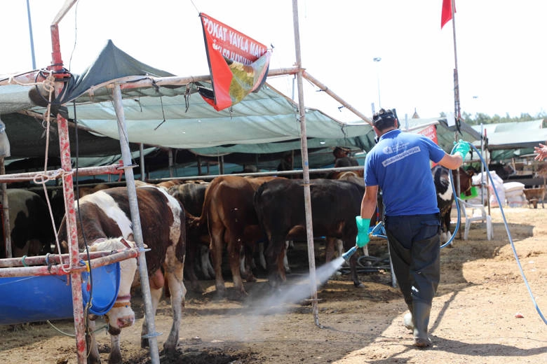 Antalya Büyükşehir Belediyesi, 19 ilçede kurbanlık satış noktalarında hayvanların ve vatandaşların uçkunlardan rahatsız olmaması için periyodik ilaçlama uygulaması yapıyor. Kurban Bayramı boyunca ekipler, kurban atıkları için de hijyen nöbetinde olacak.