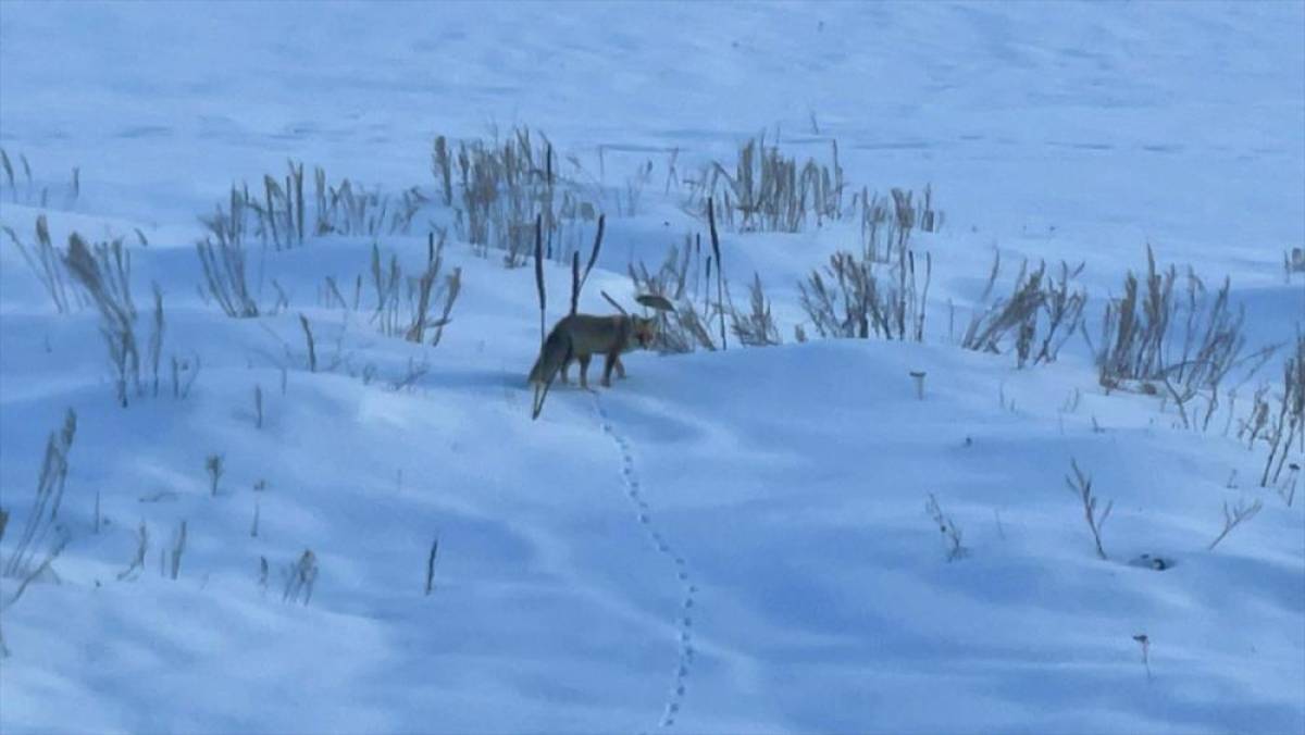 ARDAHAN (AA) - Ardahan'da kızıl tilkinin karla kaplı arazide av arayışı görüntülendi.Kentte hava sıcaklığı gece sıfırın altına düşerken, gün içinde yüksek noktalarda kar etkili oldu.Yaban hayvanları, beyaza bürünen arazilerde yiyecek bulmaya çalışıyor.Karla kaplı Yalnızçam mevkiinde bir kızıl tilkinin av arayışı kameralara yansıdı.