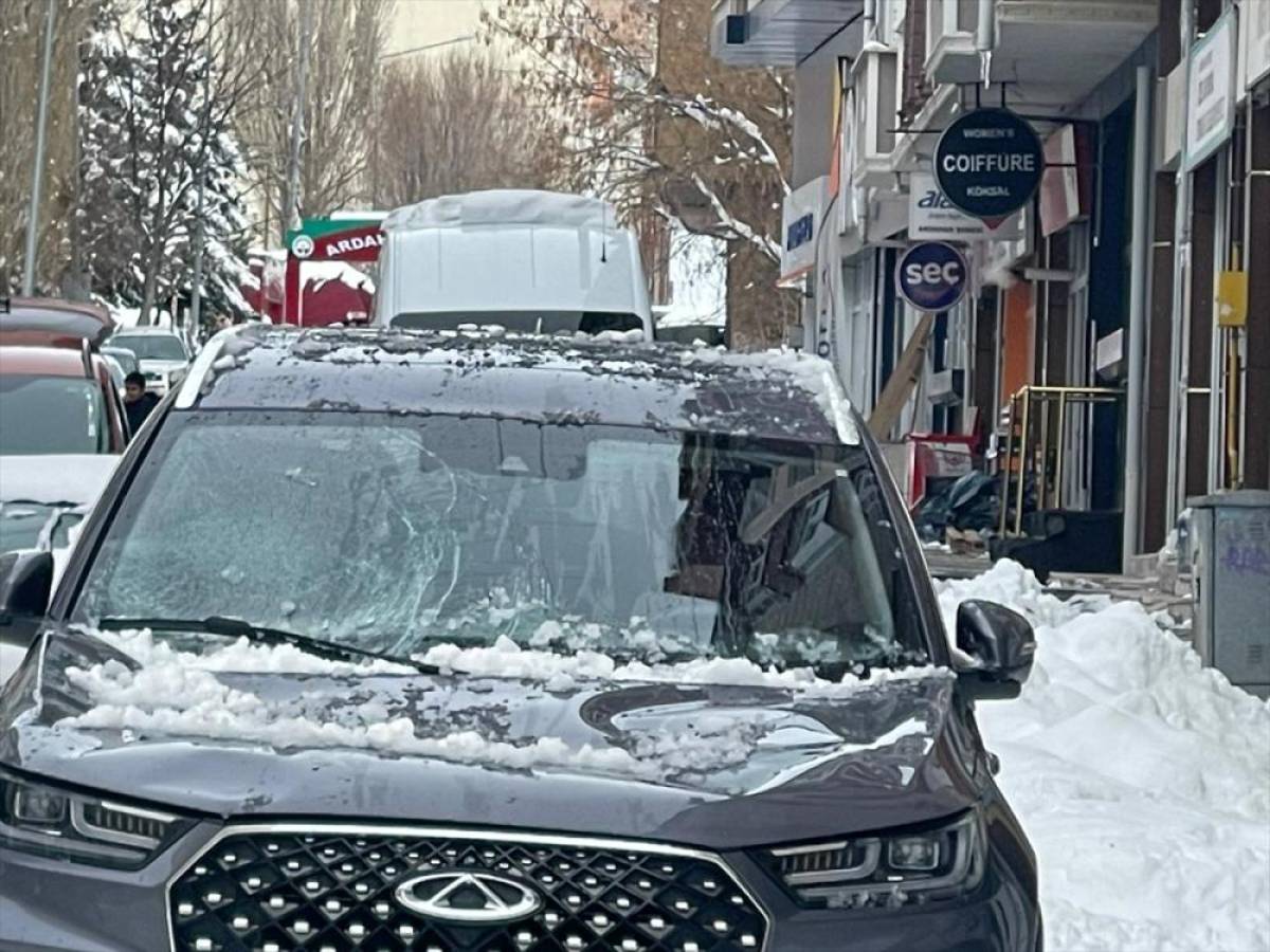 ARDAHAN (AA) - Ardahan’da bir binanın çatısından düşen kar ve buz kütlesi, park halindeki otomobile zarar verdi.