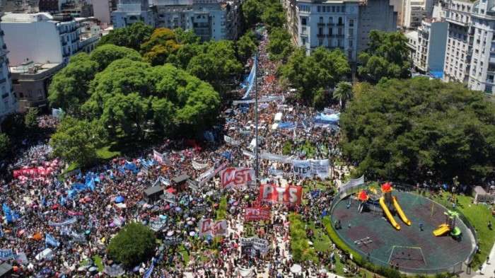 Arjantin'de enflasyonun yüzde 254'e çıkmasının ardından sıklıkla meydanlara inen farklı sektörlerden binlerce kişi, ücretlerinde artış talep ediyor.