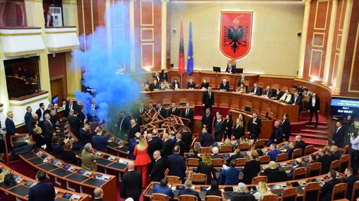 TİRAN (AA) - Arnavutluk Meclisi, ülkenin 2024 bütçesini onaylarken, muhalefet milletvekilleri görüşmeleri engellemek için sis bombası ve maytap attı.