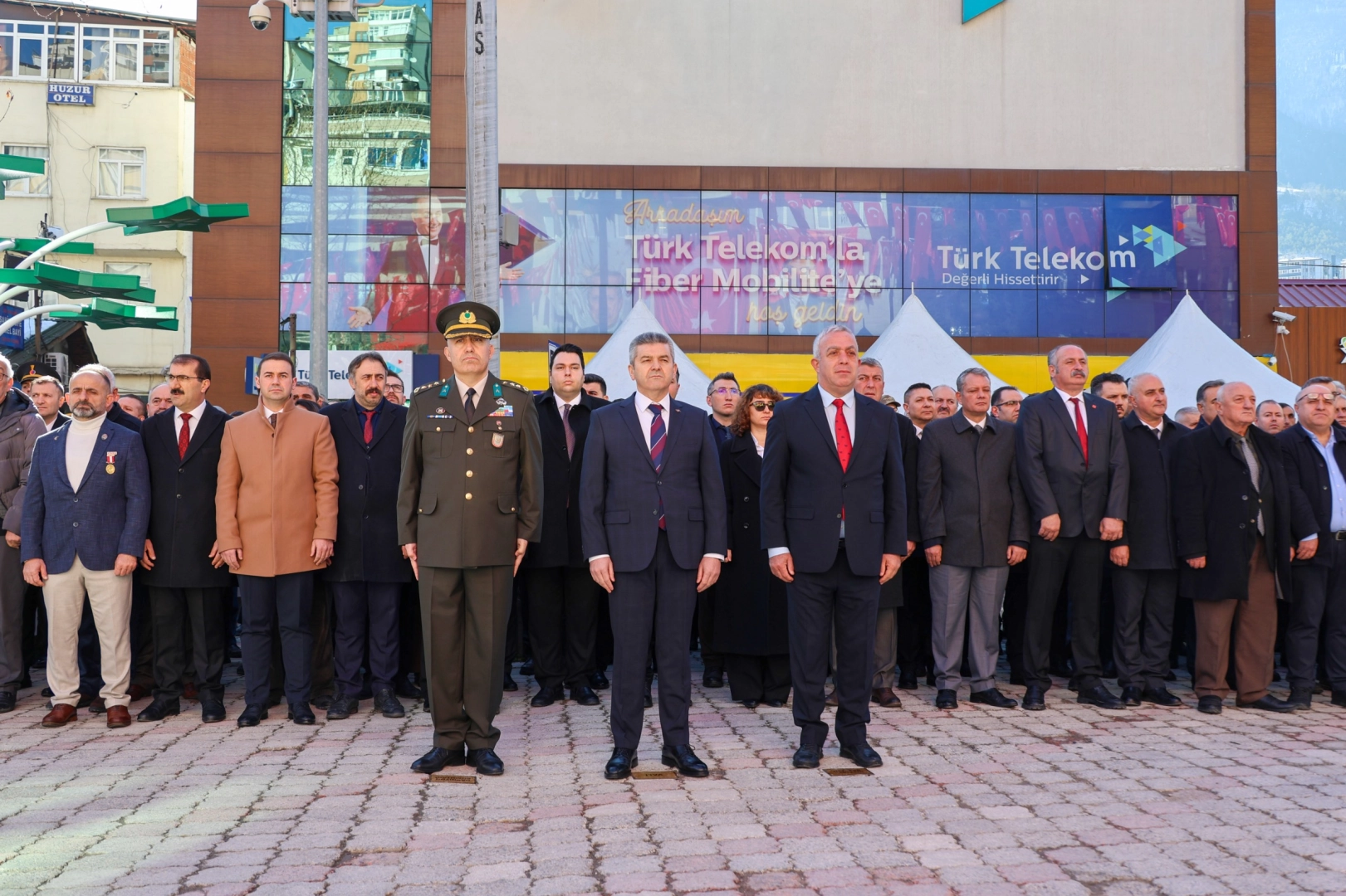 Milli İrade Meydanı’nda gerçekleştirilen törende, Vali Turan Ergün, Garnizon Komutanı Piyade Albay Muhammet Kelami Kablay ve Belediye Başkanı Bilgehan Erdem, Atatürk Anıtı'na çelenk sundu.