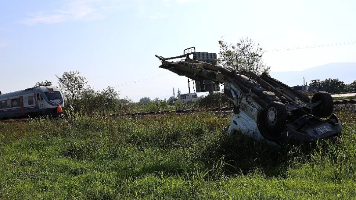 Aydın'da hemzemin geçitte trenin çarptığı kamyonetin sürücüsü yaralandı