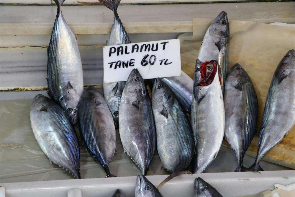 Balıkçıların ağlarına takılan palamutlar tezgahları süslüyor. İriliğine göre palamudun tanesi 60-70 lira arasında satılıyor.