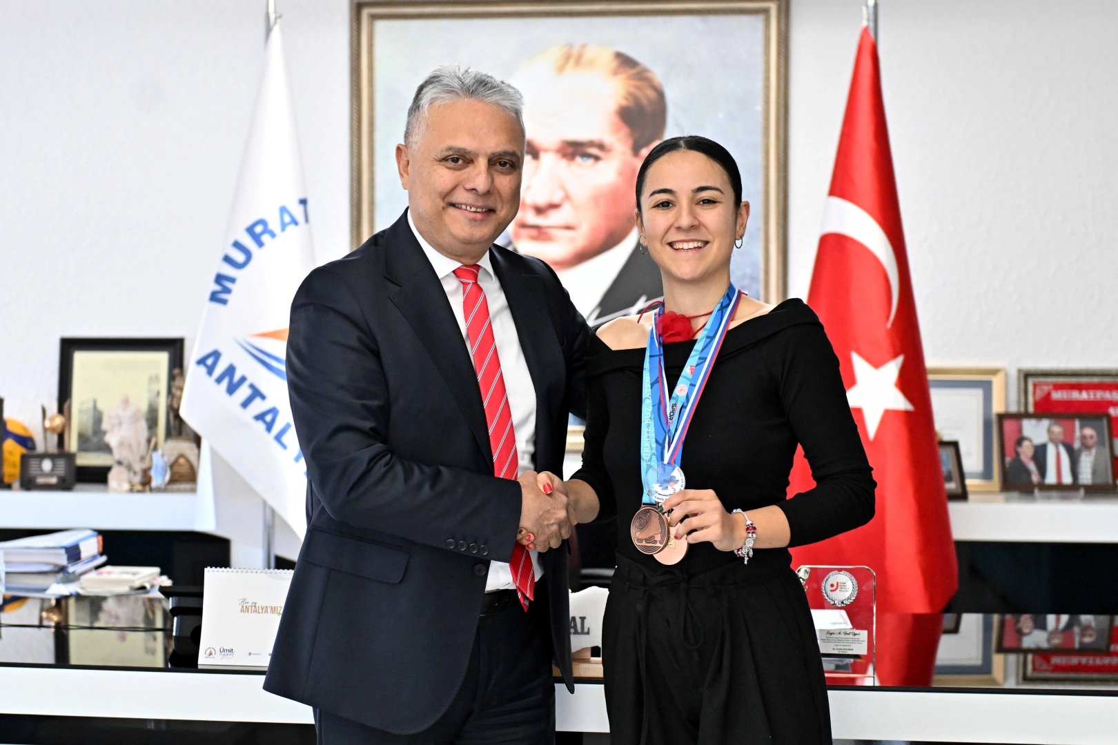 Antalya Muratpaşa Belediye Başkanı Ümit Uysal, belediyeye ait kentin tek doğal buz pistinde başladığı artistik bu pateninde Avrupa 2’nciliğine kadar uzanan Selin Eren’i tebrik etti.