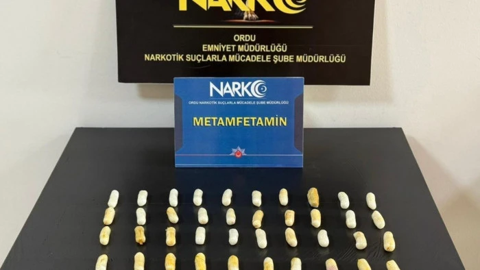 Yapılan tıbbi müdahaleyle şüphelinin midesinden 64 parça halinde 472 gram metamfetamin çıkarıldı.