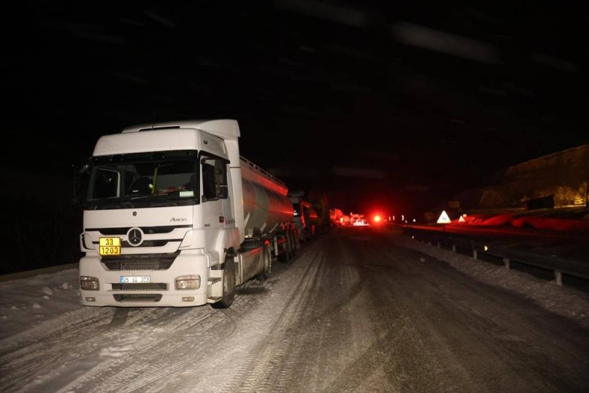 Kar ve tipinin etkisini sürdürdüğü yolda, hava şartlarının normale dönmesi ve yolun ekiplerce temizlenmesinin ardından ağır tonajlı araçların geçişine izin verilecek.