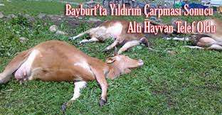 BAYBURT (AA) - Bayburt'ta yıldırım isabet eden ahırdaki 3 büyükbaş hayvan telef oldu.