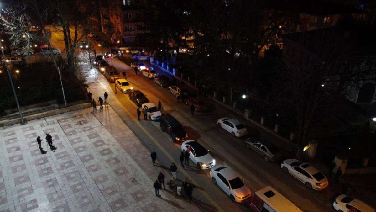 Buradan araçlarıyla konvoy oluşturan kalabalık grup, Filistin ve Türk bayraklarıyla süslediği araçlarıyla Ertuğrulgazi, Hürriyet Mahallesi, Organize Sanayi Kavşağı'nda ilerleyip Cumhuriyet Meydanı'na geldi.