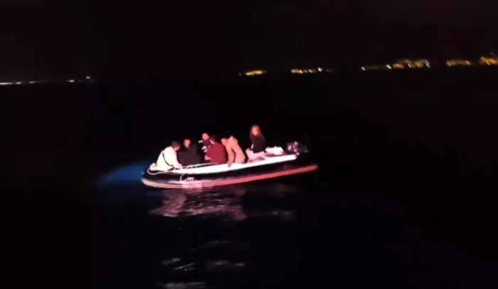 Ekipler, durdurdukları fiber karinalı lastik bottaki 6 düzensiz göçmen ile göçmen kaçakçısı olduğu belirtilen 1 kişiyi yakaladı.
