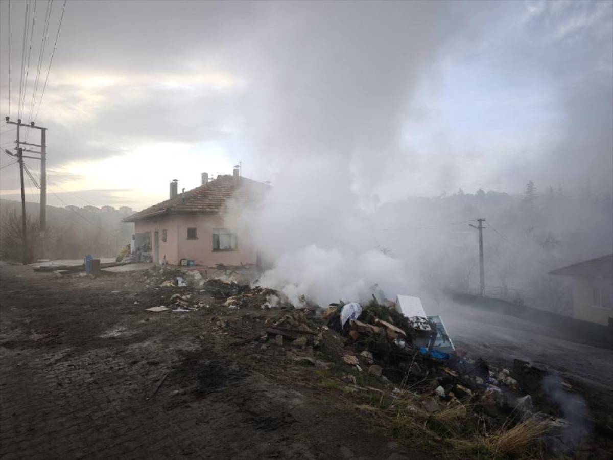 İtfaiye ekiplerince söndürülen yangında ev kullanılmaz hale geldi.