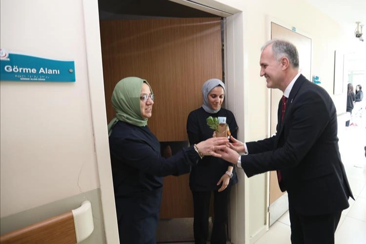 Burada yapılan görüşmelerin ardından hastanedeki hekimler tek tek dolaşarak Tıp Bayramları kutlandı. Sağlık çalışanlarına çiçek hediye edildi.