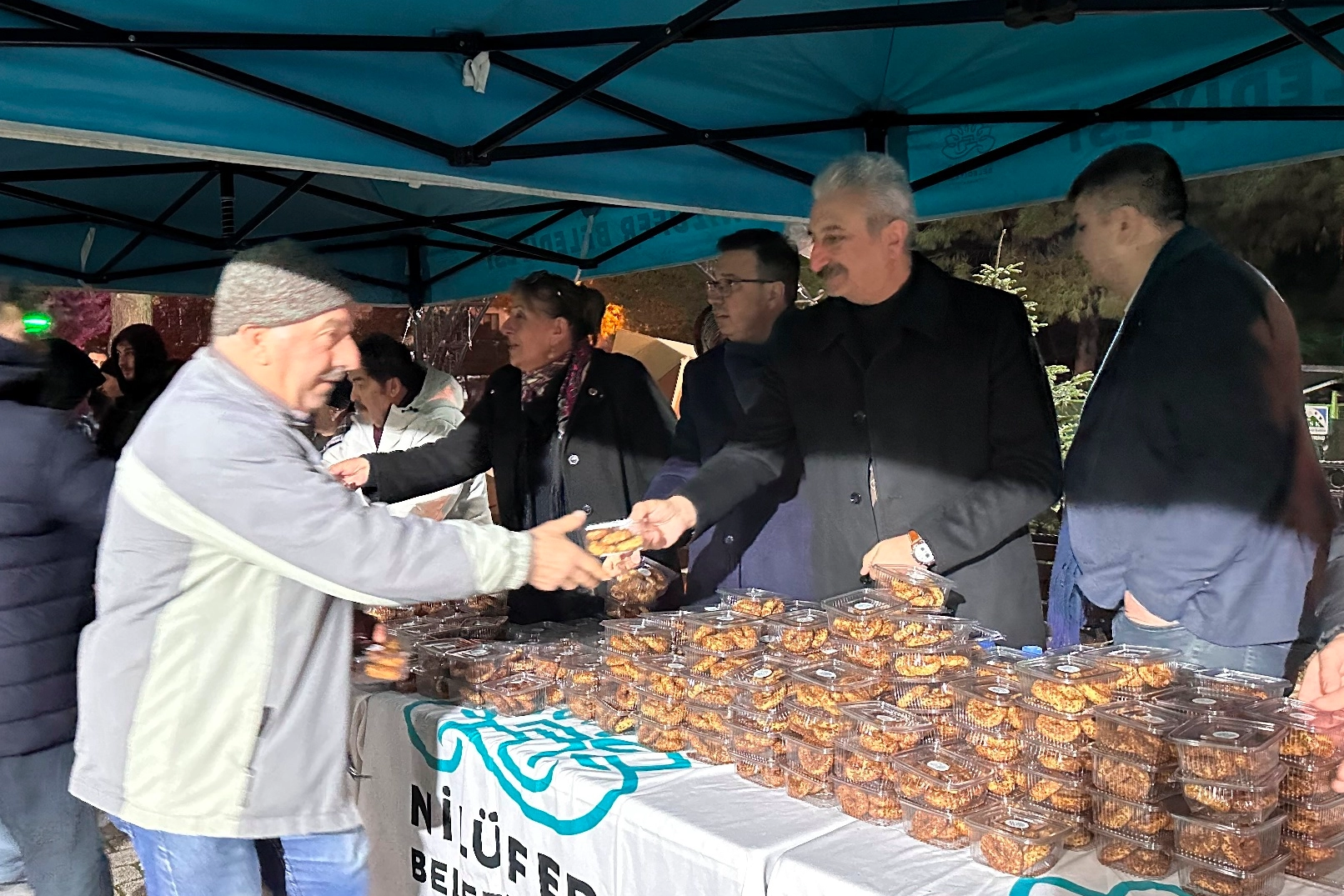 BURSA (İGFA) - Bursa Nilüfer Belediyesi, vatandaşlarla manevi günlerdeki dayanışma ve birliktelik duygusunu yaşatma geleneğini Berat Kandili’nde de sürdürdü. 23 Nisan, 29 Ekim, Yolçatı, Özlüce, Ertuğrul, Ataevler, Cumhuriyet, Barış, Demirci, Kültür, Odunluk, Balkan, Başköy ve Akçalar mahallelerinde bulunan 13 farklı camide ibadetlerini yerine getiren vatandaşlar namaz çıkışlarında, Berat Kandili dolayısıyla Nilüfer Belediyesi’nin kurduğu stantlardaki ikramlarıyla karşılaştı.