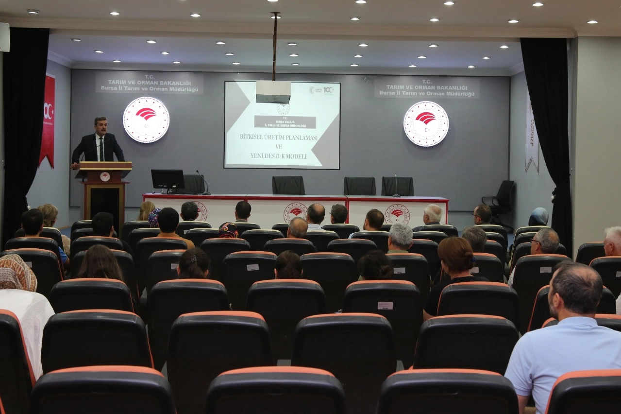 Bursa İl Tarım ve Orman Müdürü İbrahim Acar'ın katılımıyla, tarımsal üretim planlama ve değişen bitkisel üretim destekleme programları hakkında teknik personele yönelik bilgilendirme toplantısı düzenlendi.