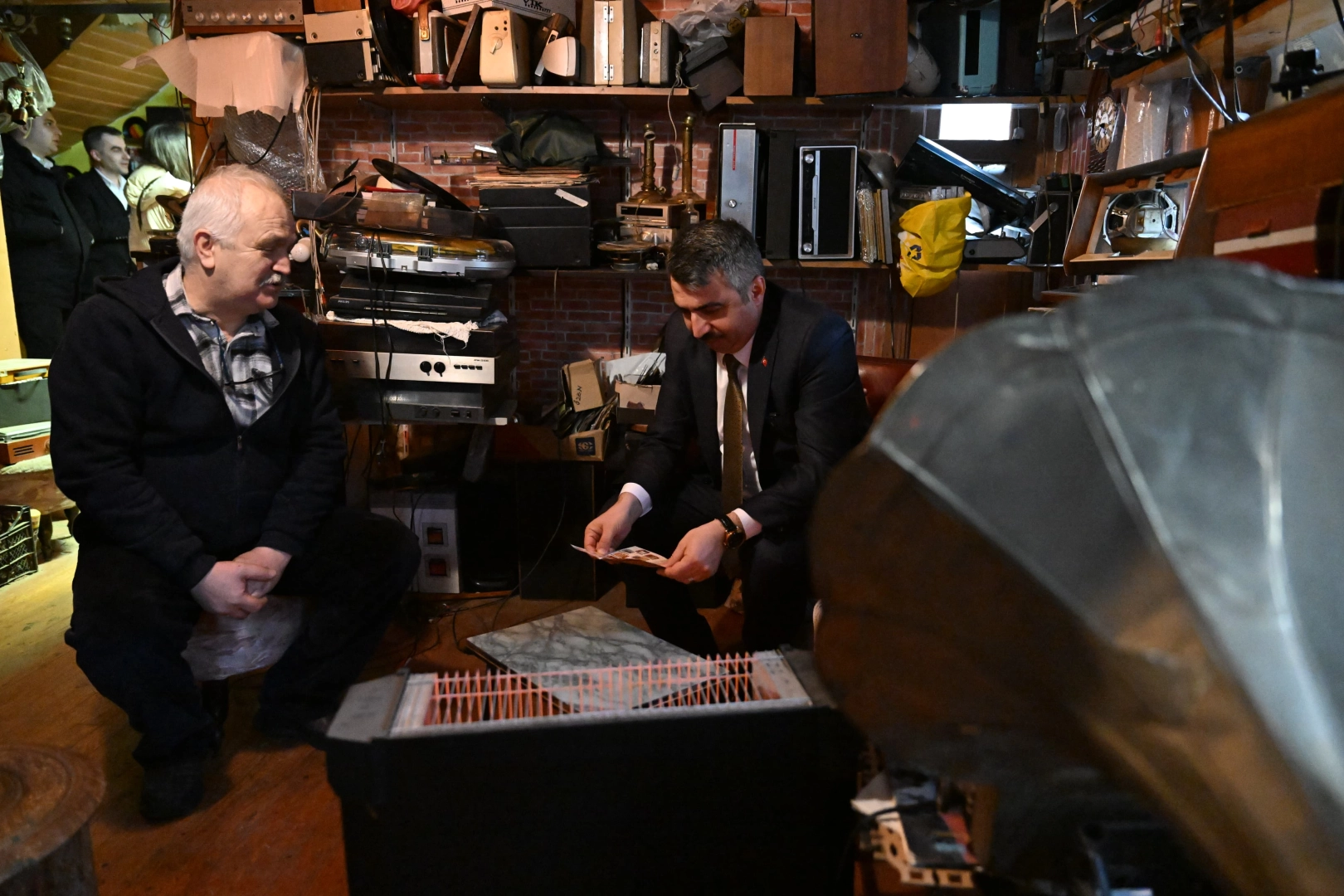 BURSA (İGFA) - Yıldırım Belediye Başkanı Oktay Yılmaz, Bursa'da Yeşil Caddesi’ndeki atölyesinde 40 yıldır eski radyo ve gramofonları tamir edip çalışır hale getiren son usta 'Nostalji Doktoru' olarak tanınan Ahmet Ali Şağın’ın (63) misafiri oldu.