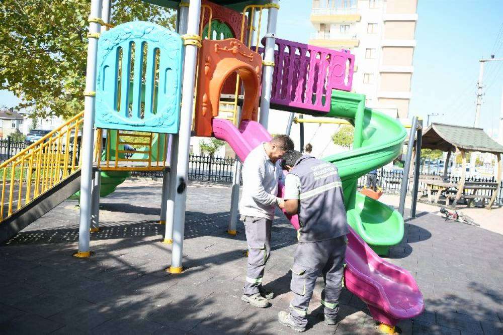 Kocaeli'de Çayırova Belediyesi Park ve Bahçeler Müdürlüğü ekipleri, ilçe genelindeki parklarda yer alan oyun gruplarında bakım ve onarım çalışmalarına tüm hızıyla devam ediyor.
