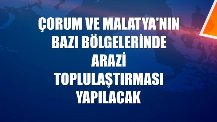 ANKARA (AA) - Çorum ve Malatya'nın bazı köy ve mahallelerinde arazi toplulaştırma ve tarla içi geliştirme hizmetlerinin yürütülmesi kararlaştırıldı.