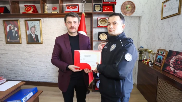 HAKKARİ (AA) - Hakkari'nin Çukura Kaymakamı Emre Cebeci, polis memurlarına başarı belgesi verdi.