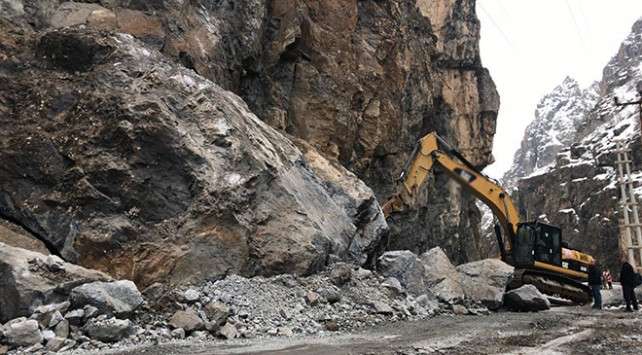 HAKKARİ (AA) - Hakkari'de dağdan kopan kayalar nedeniyle ulaşıma kapanan kara yolu, ekiplerin çalışması sonucu açıldı.