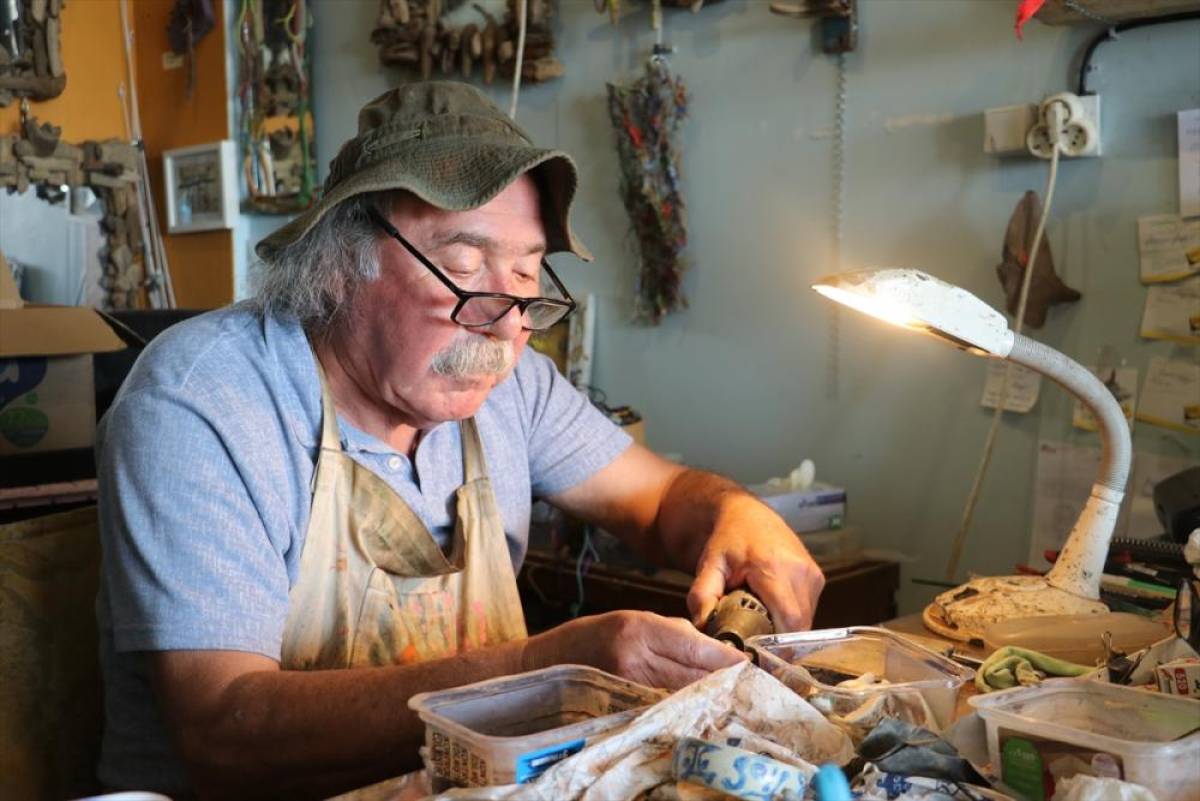 Denizin sürüklediği ağaç ve amforalar, emekli öğretmenin elinde hediyelik eşyaya dönüşüyor