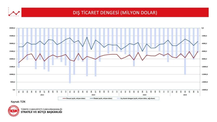 İhracatın ithalatı karşılama oranı Ocak-Şubat 2025 döneminde yüzde 73,2 iken bu yılın aynı döneminde yüzde 70,4'e geriledi.