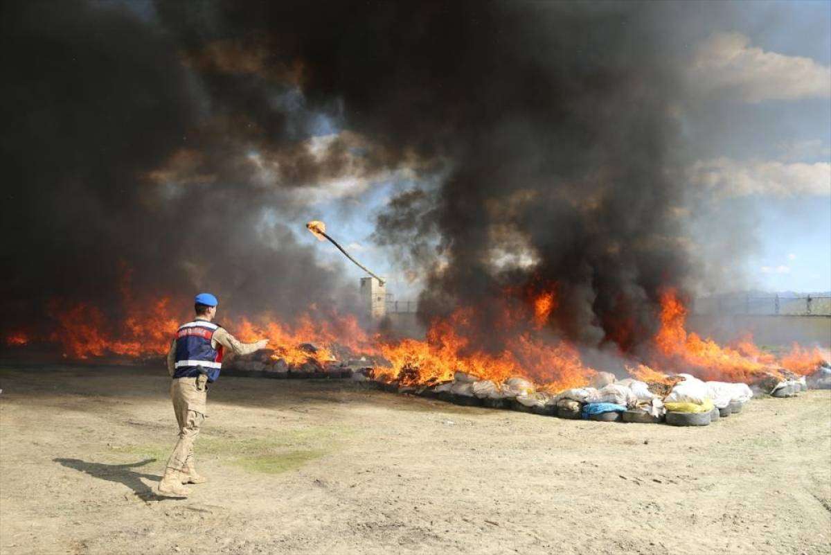 Esrar, Valilikçe oluşturulan heyet huzurunda İlçe Jandarma Komutanlığının uyuşturucu madde imha alanında yakılarak imha edildi.