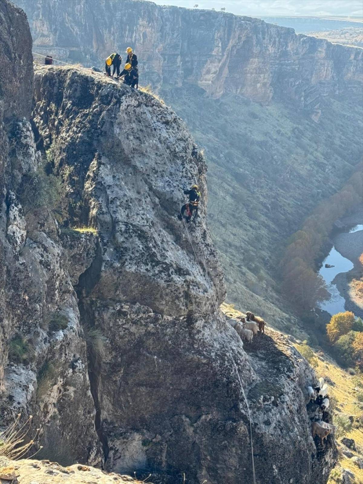 Diyarbakır'da kayalıklarda mahsur kalan 25 keçi kurtarıldı