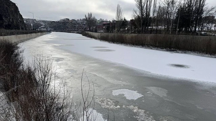 Yolların buz tuttuğu kentte, akarsuların yüzeyini de buz tabakası kapladı.