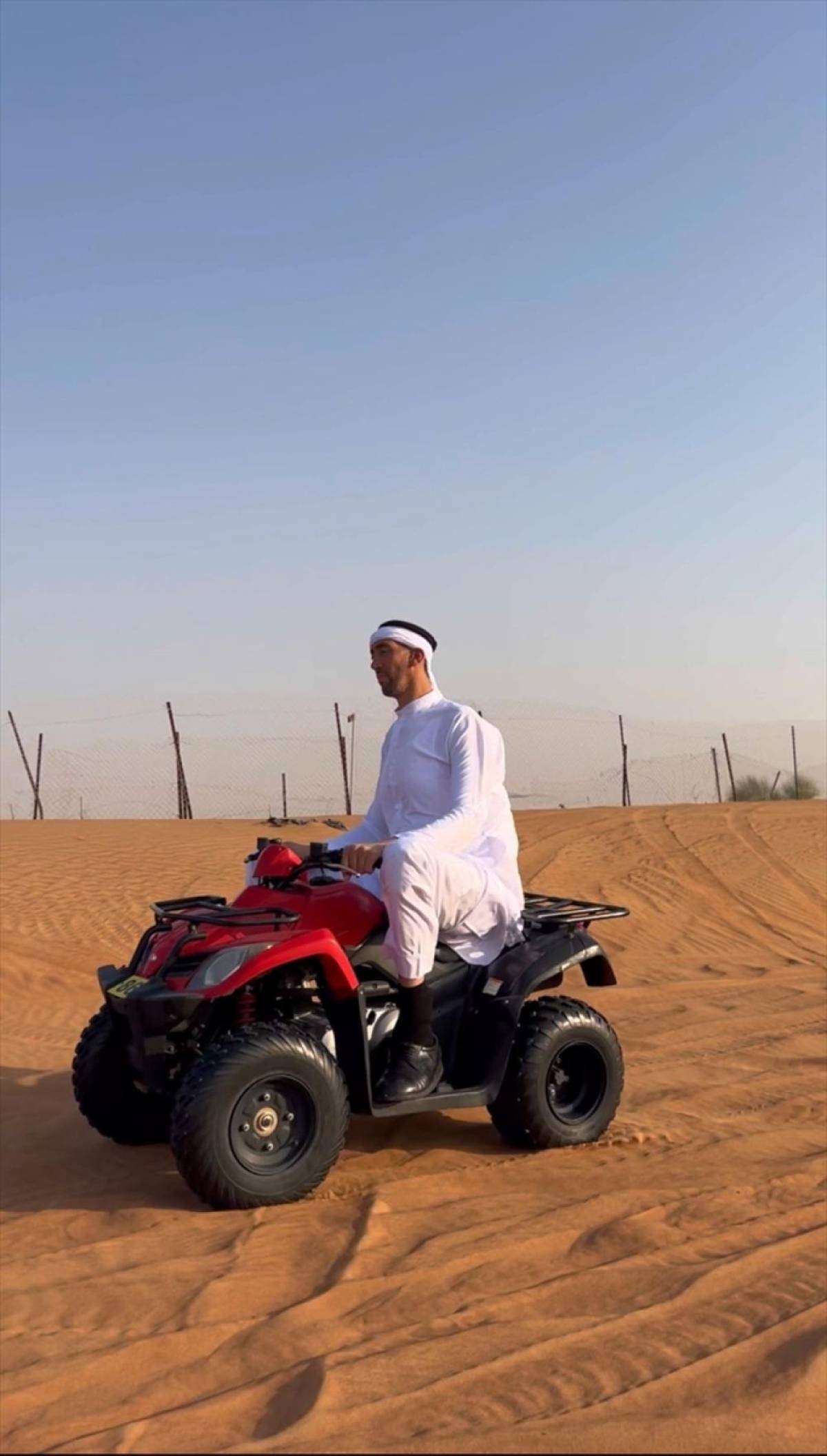 Kösen, Dubai'de ATV ile çölde safari yaptı, gezi boyunca hayranlarıyla hatıra fotoğrafı çektirdi.