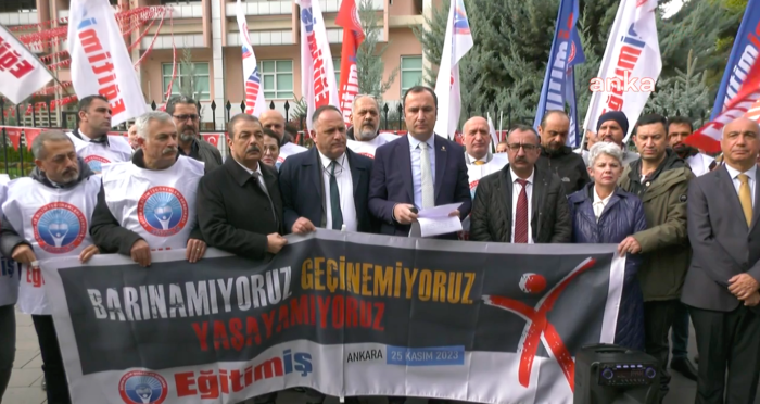 Eğitim-İş Genel Başkanı Kadem Özbay, burada yaptığı basın açıklamasında, öğretmenlerin temel ihtiyaçlarından yoksun, mesleki olarak değersizleştirilmiş durumda olduğunu öne sürdü.
