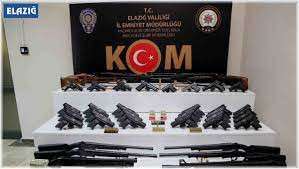 Elazığ'da ruhsatsız 15 tüfek ve 37 tabanca ile mühimmat ele geçirildi, 9 şüpheli gözaltına alındı.