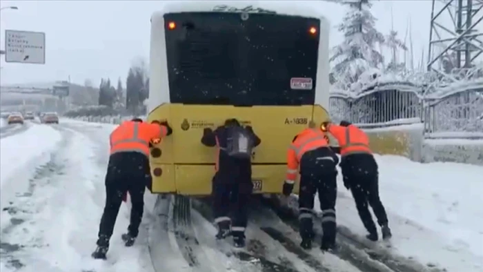 Otobüs, çevredekilerin itmesi sonucu yoluna devam etti.