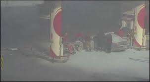 Eyüpsultan'da bir aracın akaryakıt istasyonundaki pompaya çarpması sonucu yangın çıktı